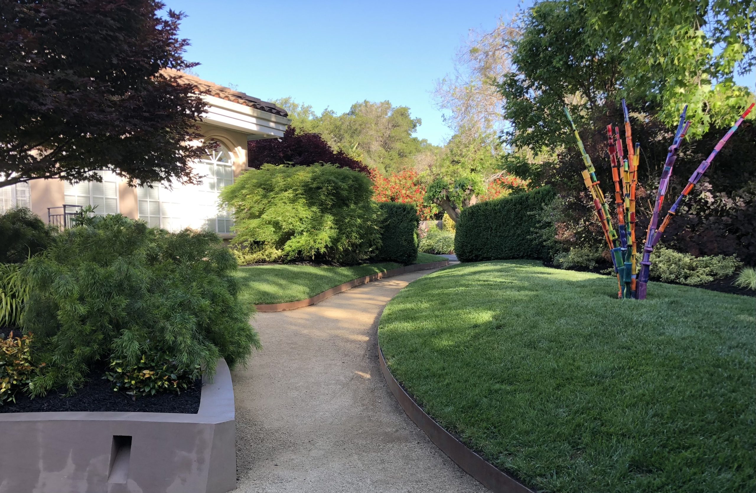 David and his team at Indian Rock have done three projects for me, ranging in size from small to very large. The work has included building several hundred feet of dry stack walls, other retaining walls, hundreds of feet of redwood fencing, complicated gates, and flagstone and other paths, as well as some planting, replacement of soil, irrigation, and placement of aesthetic boulders and small rocks.
